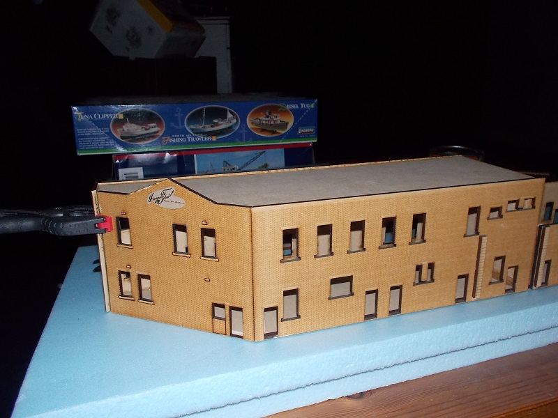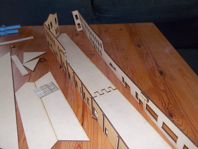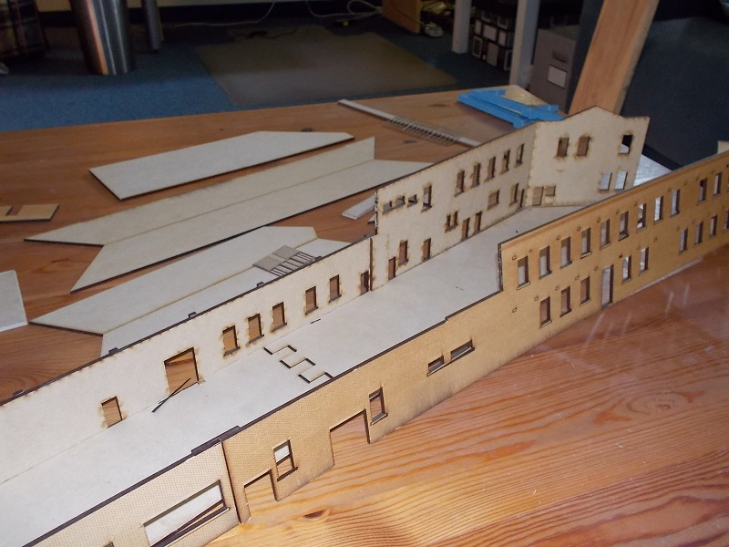 I've been working on the building . It wasn't a kit per se , but someones effort on a laser cut plan .....only missing a lot of pieces . The warp that I saw turned out to be a compound warp in two directions but with a lot of clamping and gluing I've managed to get it pretty straight .