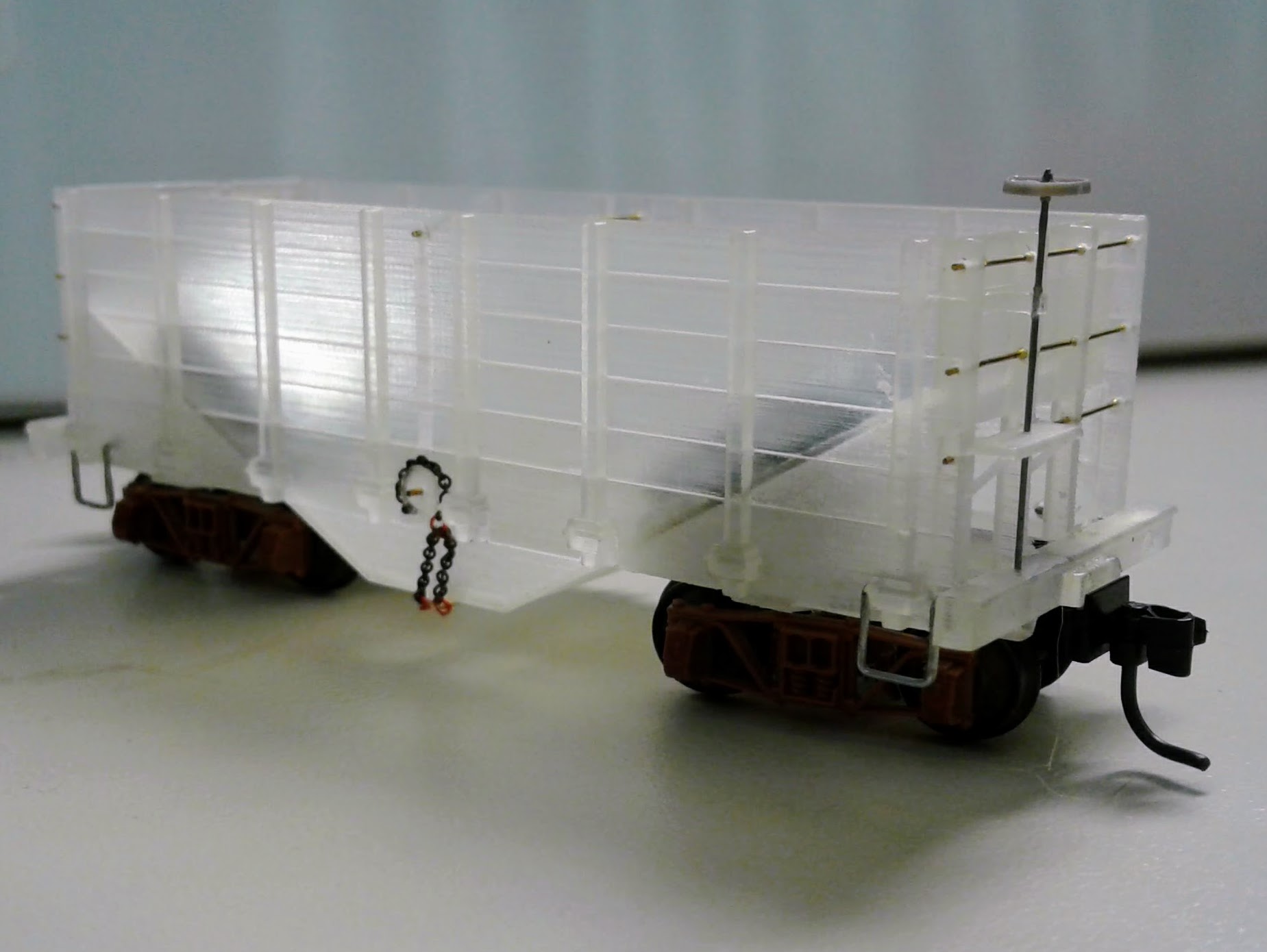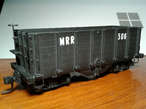 It's an HOn3 hopper I drew up based upon some others I had scratchbuilt following a 1958 article in Model Railroader. The print came out excellent, and the assembly was easy.