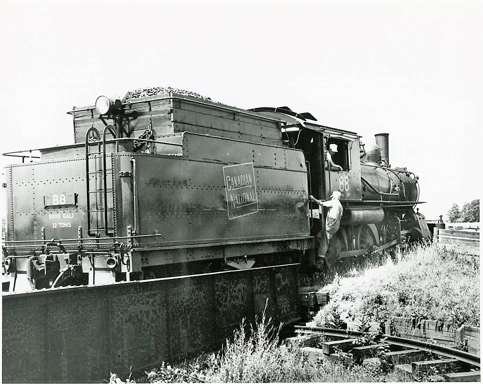 Interesting photo, Ed, apparently out of Ian Wilson's "Steam Echoes of Hamilton". It's especially interesting to me in that I hadn't payed too much attention to the July 25, 1953 date, which was roughly two months after the 88's unfortunate incident on Ferguson Avenue, in Hamilton, on May 27, 1953.
