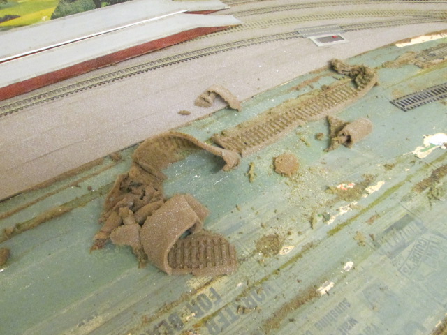 the station area , old track/foam underlay removed and track laid before balasting , the station is a mainline through junction station with 4 platforms