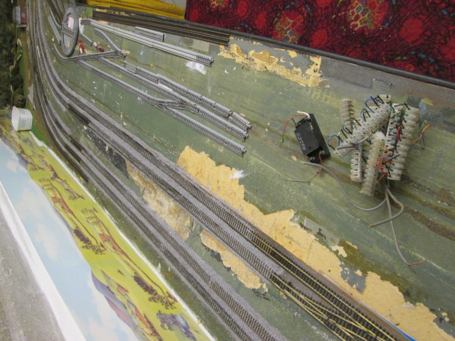 in the late 1960's my layout was built in the loft , British outline to the UK scale of 00 (1-76) , and the flexi code 100 Peco track was laid on foam underlay , now some years later the track & underlay has been lifted , all track & points got a couple of days soak in the bath tub .