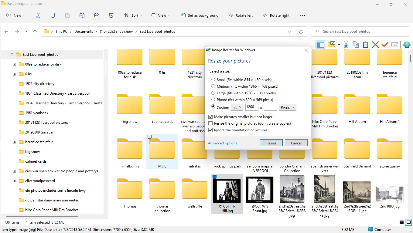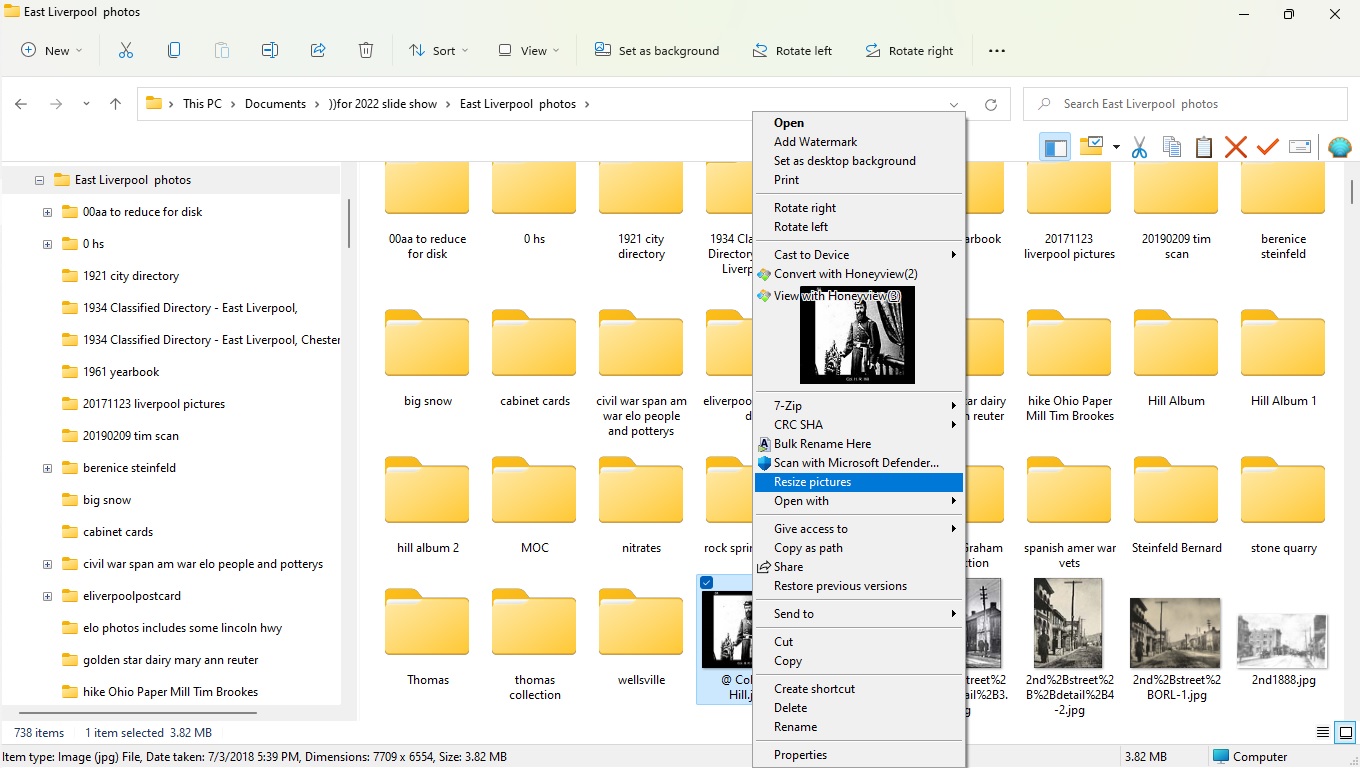 Many of us that have the windows operating system use a free program called Windows picture resizer. It installs quickly and creates another right click function to resize the photo. You have the option to resize the original or just make a resized copy. It can do an unlimited number of photos if you select them all. Sometimes I copy all the pictures to another folder and resize them all there. I have, at times, resized over 1000 photos at a time and it usually takes less than 2 minutes.