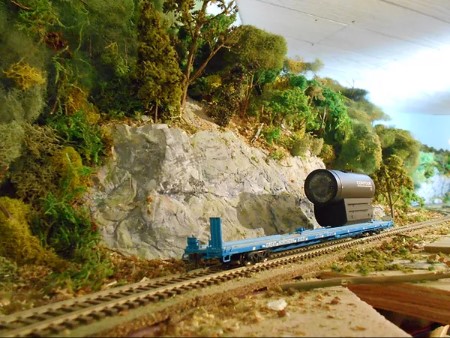 First I saw the layout section and thought that I ought to update my video tour of my layout from front-of-the-engine perspective - I've done quite a lot since my last recording using my son's helmet camera laid on a flat car (shown below).