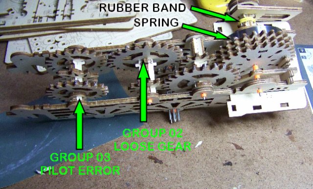 On top of that, there are errors in the assembly drawings. I thought that group 03 was assembled backwards, well, it wasn't, the drawing in one other step is wrong, and no, the gears in group 02 do not mesh with group 03 as shown in another drawing. 35