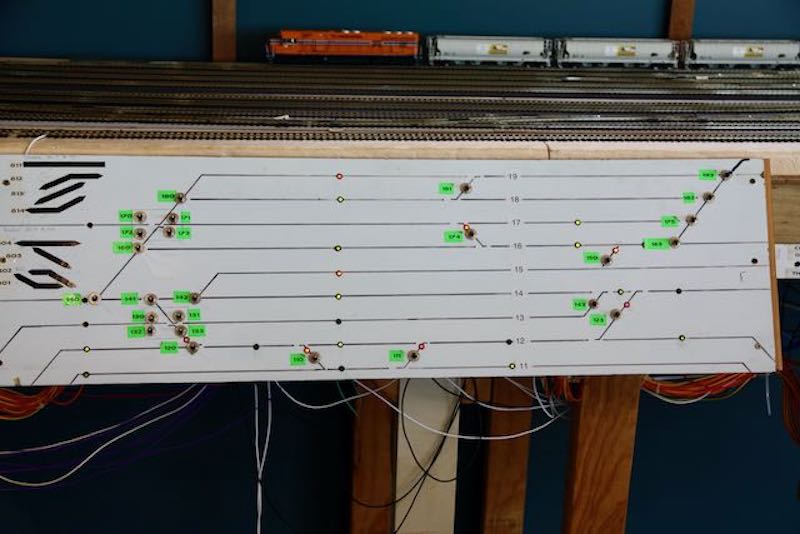 Below is my crude attempt to make a switchboard with these toggles switches in a busy area of the layout.