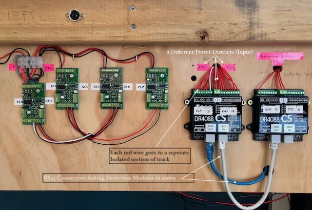 Each Reverse loop is controlled by a DCC Specialties "PSX-AR Power Shield Auto Reverser/circuit breaker"