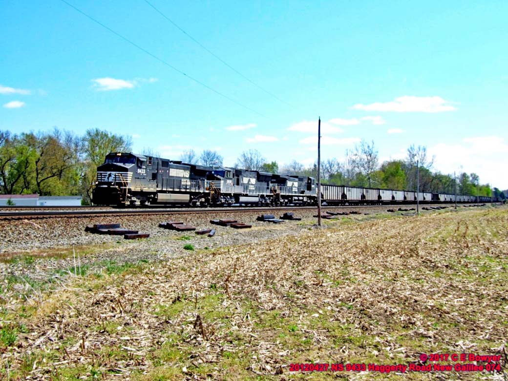 Westbound coal train at Haggerty Road, between New Galilee and Enon Valley, Pa. 4/27/2012