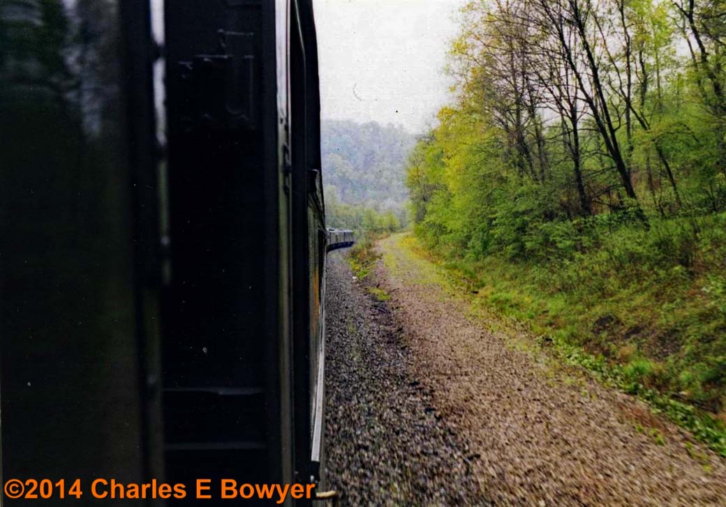 I was invited to ride to Conrail OCS on April 28, 1998. I was able to get my volunteers on board too. The trip for us started at Freeport, Pa and went to South Fork, Pa via the Conemaugh line. The train was turned at South Fork.  Good food, good friends and good company Here is a Dutch door shot of the train.