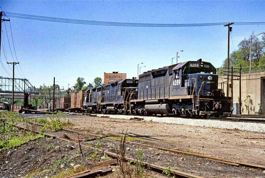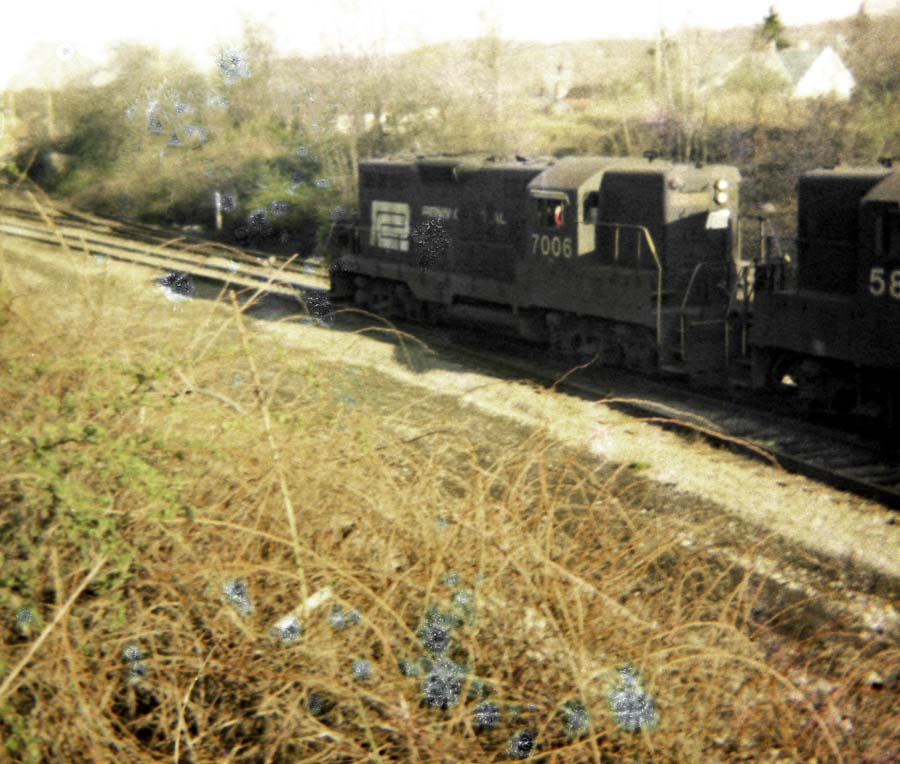 May 3, 1975. The only camera I had (and the only one I could afford) was a Kodak instamatic. It is not a great picture, but this is the local under the West Street bridge in East Palestine, Ohio. The negative was showing some mold when it was scanned