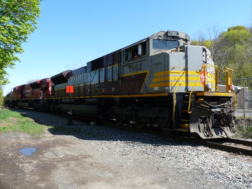 April, 1975 at the Market Street crossing in East Palestine, Ohio. PC FP7 rooster shot taken with an instamatic  and one of the few photos taken that was what I call worth having. The subject saved the picture from the bin.